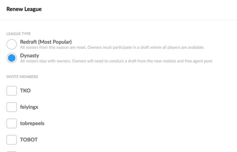To start a new dynasty league, simply create a new league, and choose Dynasty as the type.