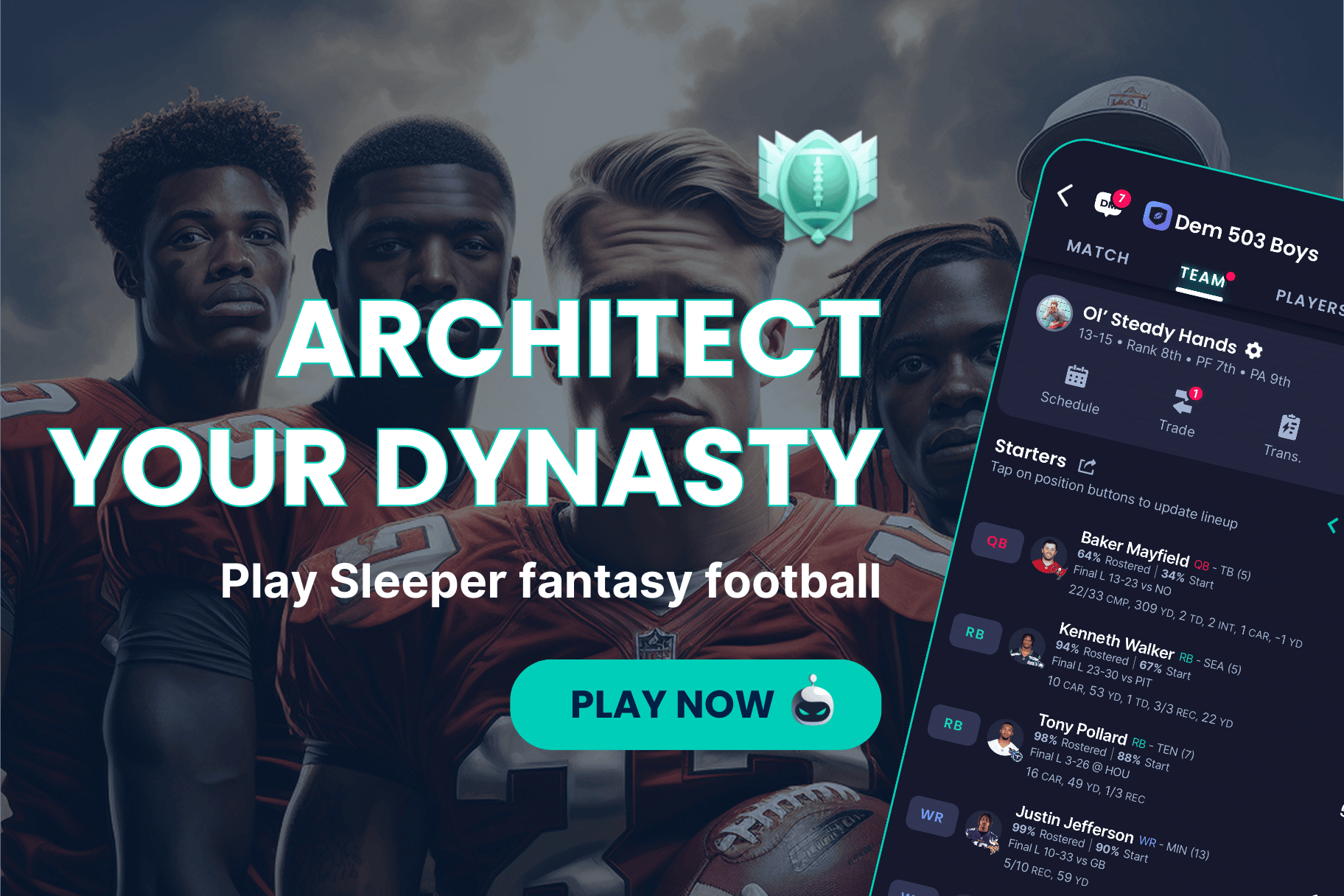 If you prefer DFS, consider Sleeper Picks. You can 100x your winnings with just a few selections, follow live game casts and chat with your squad mates as you compete.