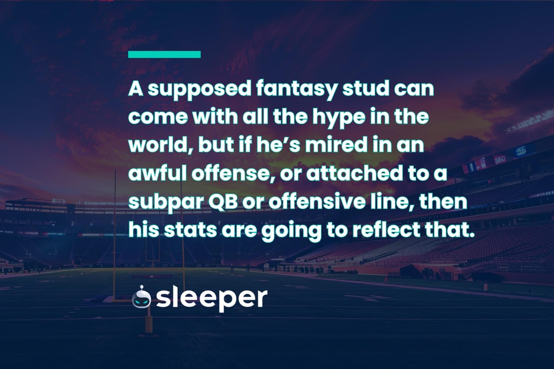 Sometimes, it all comes down to opportunity and the players around you. A supposed fantasy stud can come with all the hype in the world, but if he’s mired in an awful offense, or attached to a subpar QB or offensive line, then his stats are going to reflect that.