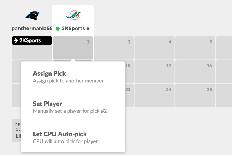Just like Draft Day in the NFL, you can shop your 2nd and 3rd rounder to move up into the 1st round. If the other owner agrees, then your commissioner can instantly assign draft picks to both you and the other owner to reflect the new draft pick ownership.