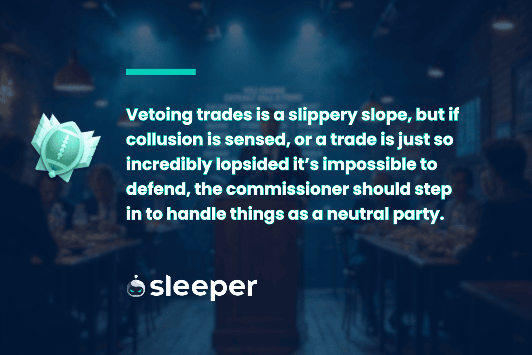 There comes a time when the commissioner is called upon to be the arbiter of a contested deal. When it happens, it’s usually centered on a trade that has caused consternation among managers. Vetoing trades is a slippery slope, but if collusion is sensed, or a trade is just so lopsided it’s impossible to defend, the commissioner should step in to handle things as a neutral third party.