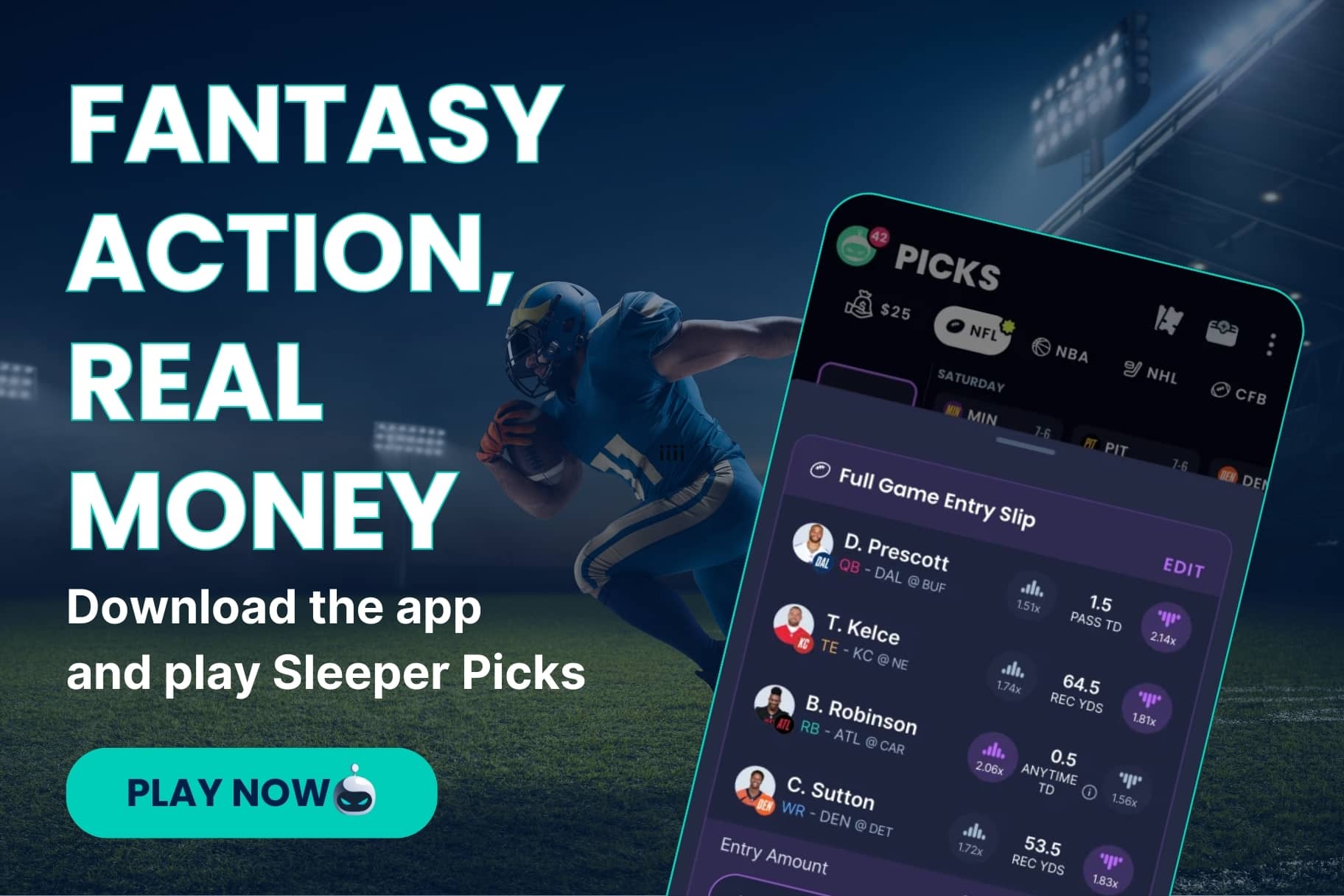 Another way to enjoy fantasy football each week is through Sleeper Picks, a daily fantasy sports (DFS) offering where you make weekly picks during the NFL season. NBA, MLB and other league picks are also available for the year-round fantasy sports fan.