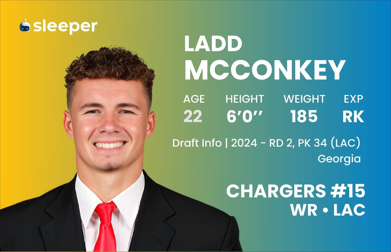 - Ladd McConkey, Chargers (ADP 89.0 / WR41)