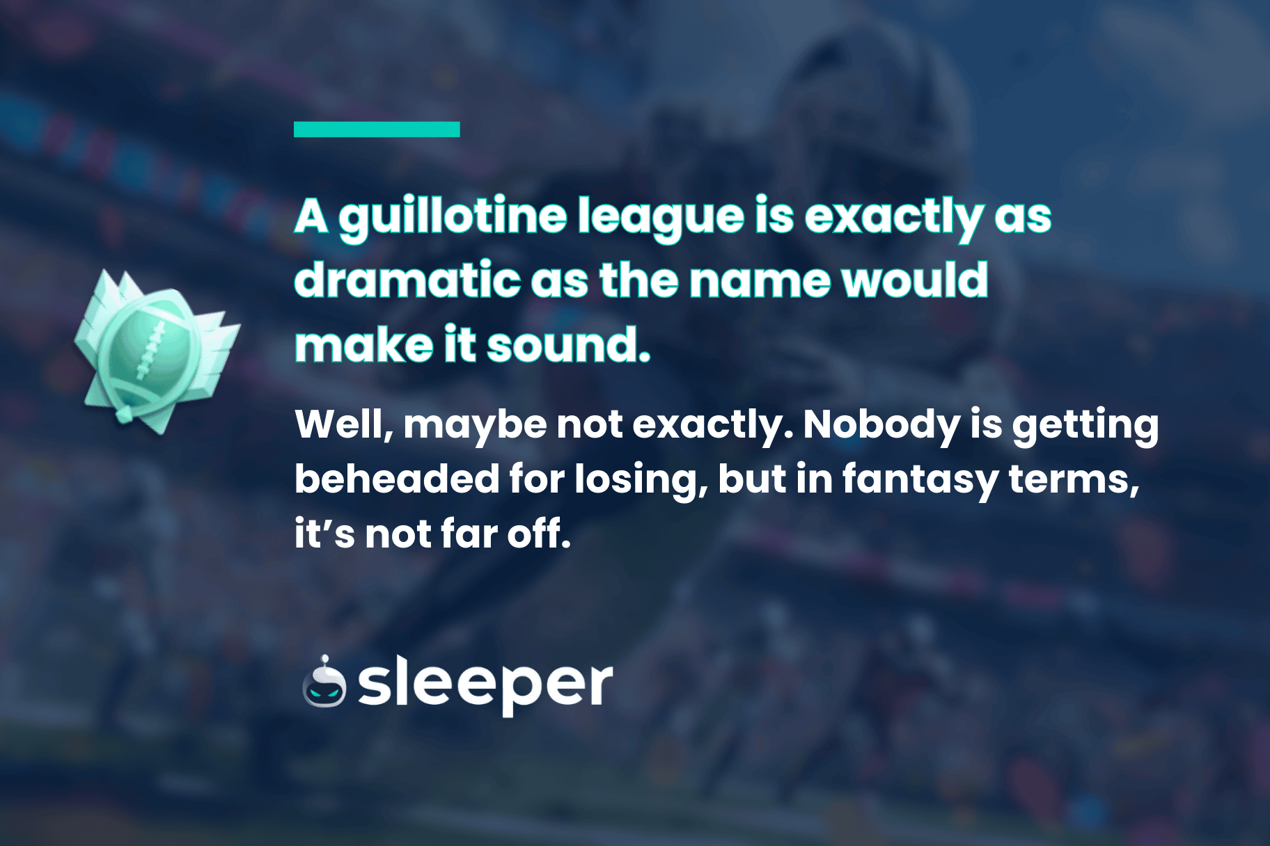 So that’s different. Guillotine fantasy football is not for the purists, but it offers a brilliant variation on a well-worn theme, and you can get started by joining Sleeper today. Download the app or sign up on the website.