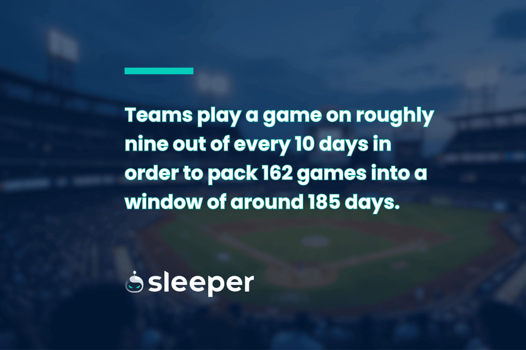 Save for the four-day break for All-Star Game festivities at some point in early-to-mid July each year, teams play a game on roughly nine out of every 10 days in order to pack 162 games into a window of around 185 days.