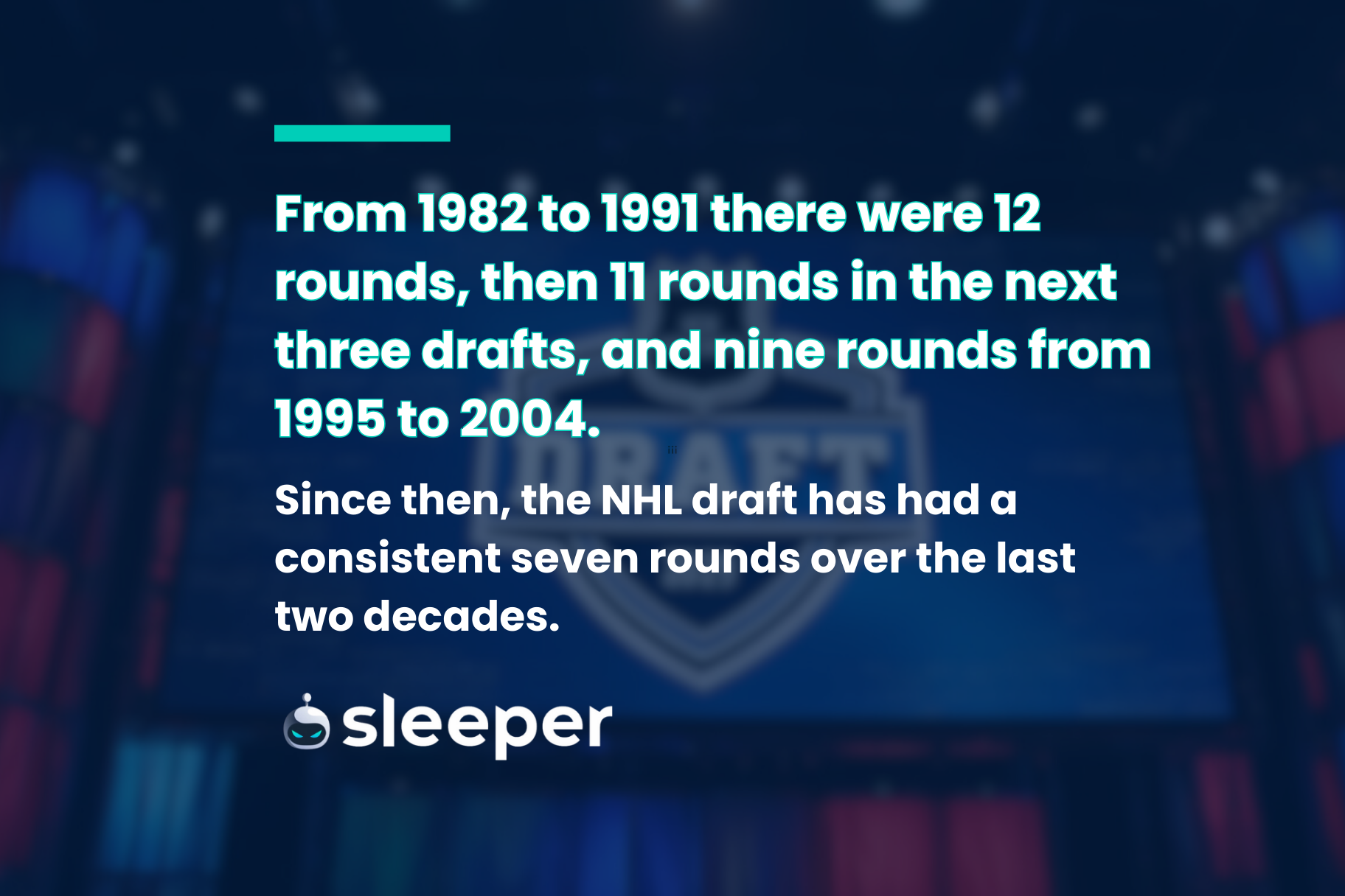 From 1982-91 there were 12 rounds, then 11 rounds in the following three drafts and nine rounds from ‘95-04. Since then, the NHL draft has had a consistent seven rounds over the last two decades.