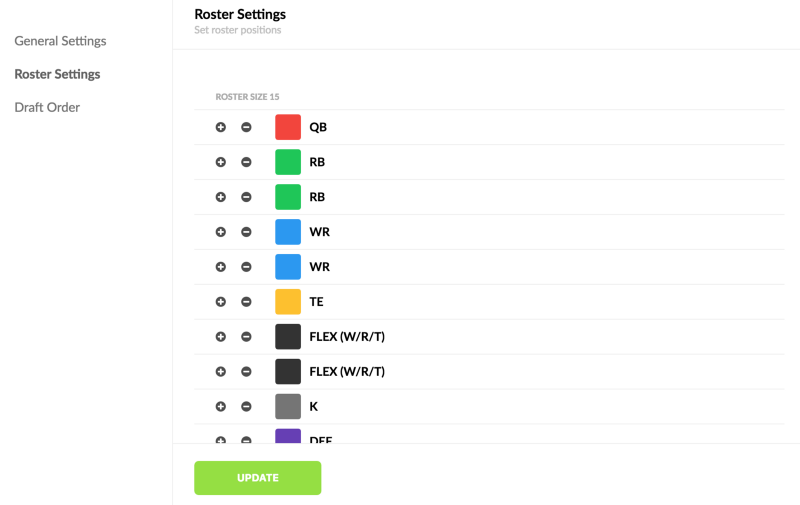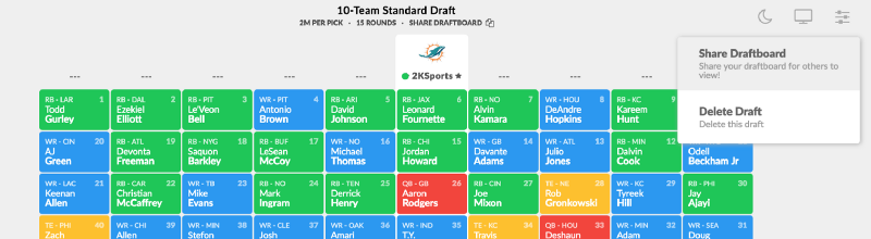 You can modify the draftboard to your liking. Choose between Standard, PPR, and Half-PPR drafts.