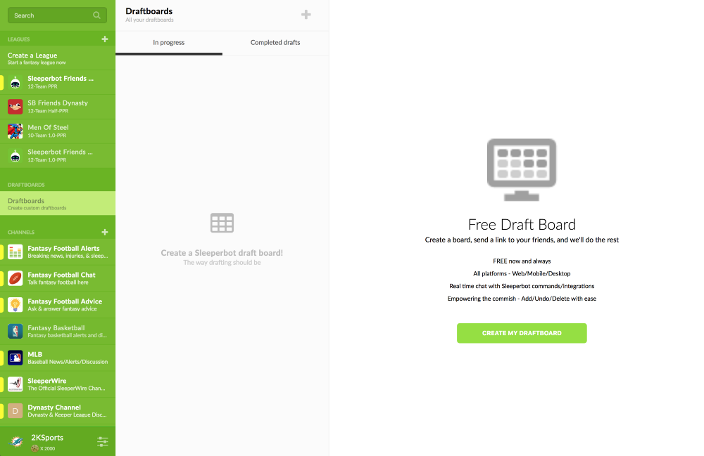 The Sleeper Draftboard was originally designed for live in person drafts. The most important aspect of its design is the draftboard user interface — hence the name.