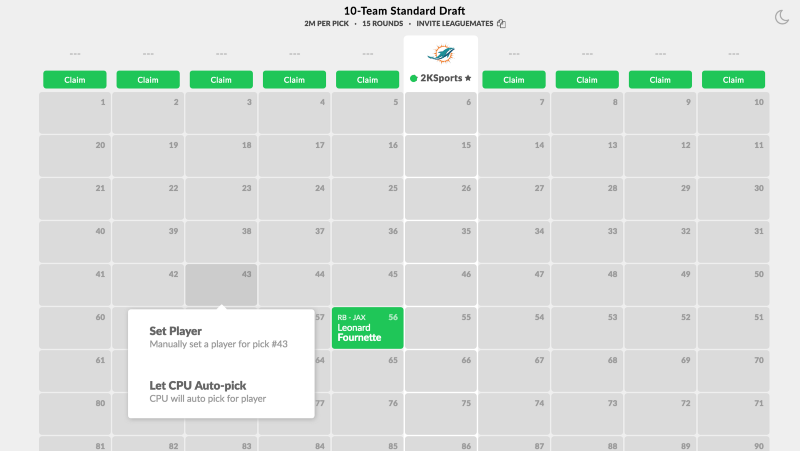 Keep in mind that this very same draftboard can be used for your league’s live draft as well, whether you play on Sleeper or another platform.