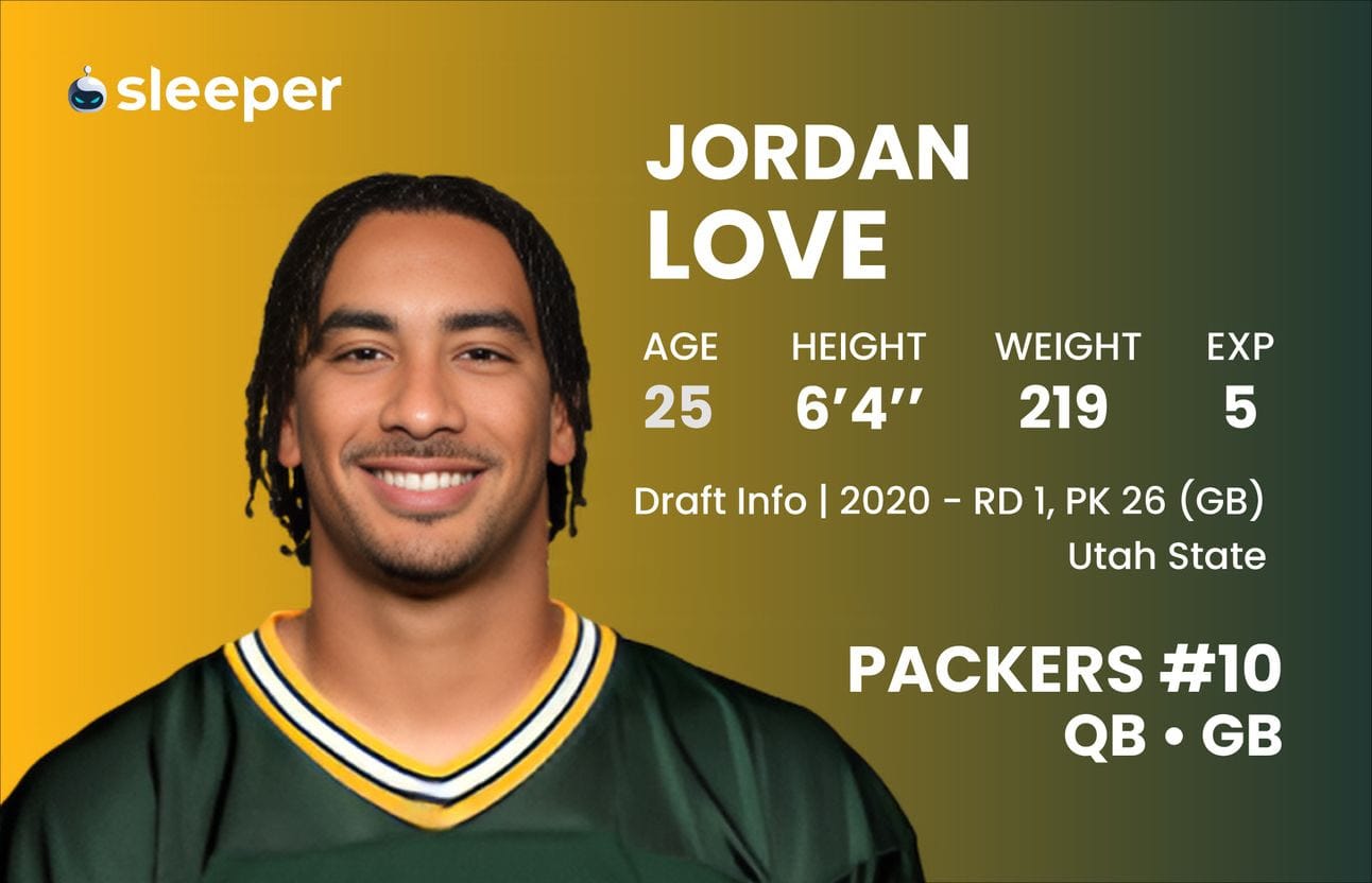 After nine QBs were drafted in the first nine rounds, Green Bay’s Jordan Love midway through the 10th round represented a player with a tremendous overall ceiling and weekly top-five potential.