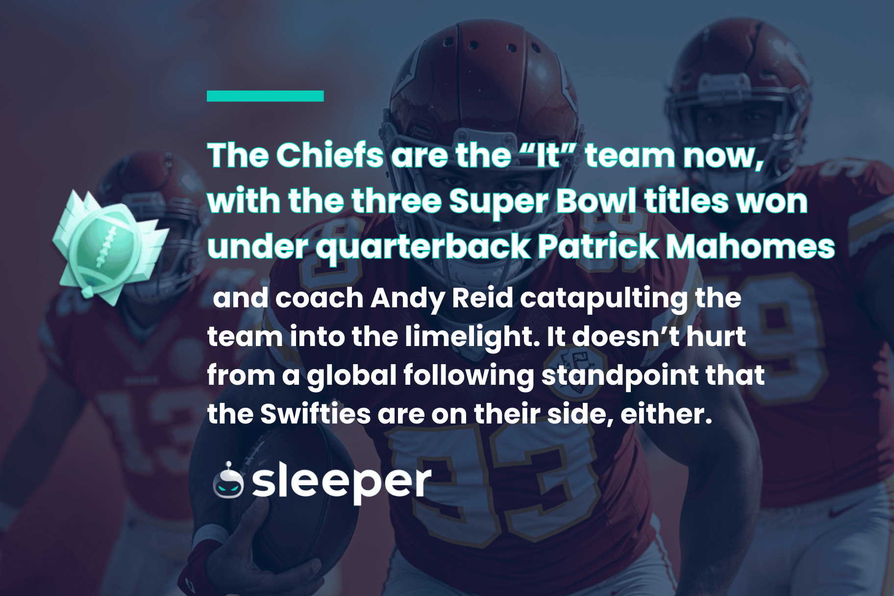 The Chiefs are the “It” team now, with the three Super Bowl titles won under quarterback Patrick Mahomes and coach Andy Reid catapulting the team into the limelight. It doesn’t hurt from a global following standpoint that the Swifties are on their side, too.