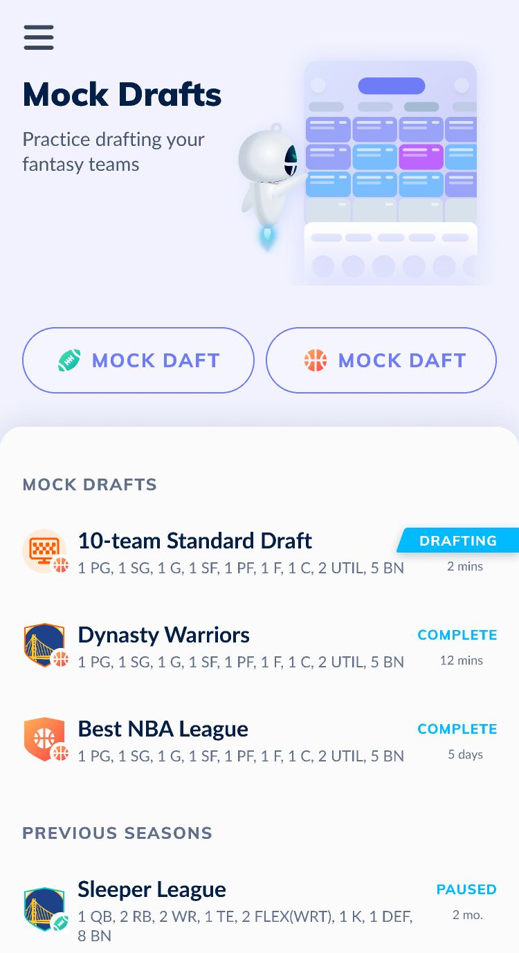 You can now easily differentiate between your mock drafts for different sports. We recently launched NBA leagues on Sleeper. Go here to learn more.