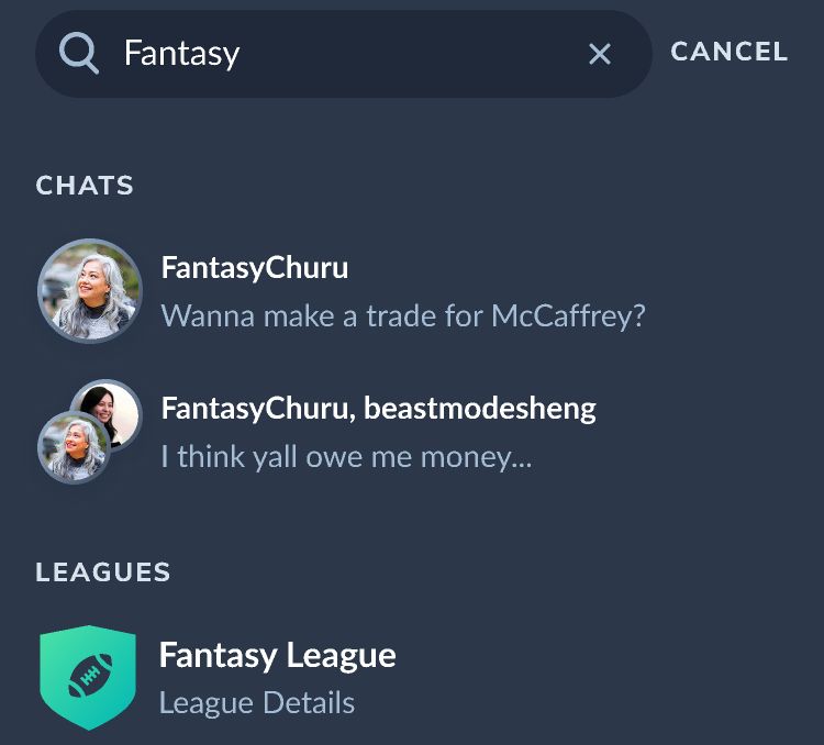 Below, we searched "Fantasy" and it brought up the most relevant users and leagues that included that word.