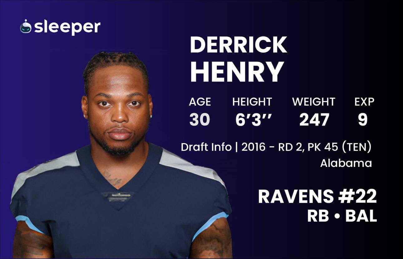 At the goal line, the 30-year-old Henry should be fantasy gold, since Jackson has never eclipsed seven rushing touchdowns in any season. Sleeper conservatively projects 1,089 rushing yards and 10 rushing touchdowns, though the upside here is closer to 1,500 and 20. He’s an early third-round pick in half-PPR formats with an ADP of 26 on Sleeper.