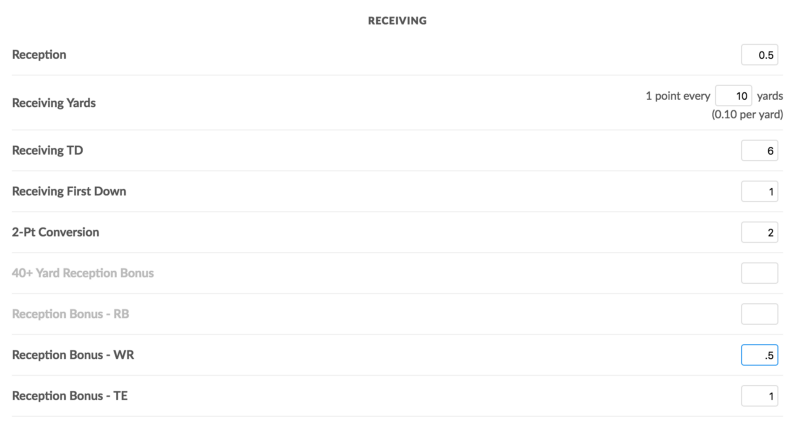 If PPFD is too new for you, we also added PPR bonuses for RBs, WRs, and TEs, so you can tune the value of a reception for different positions as well.