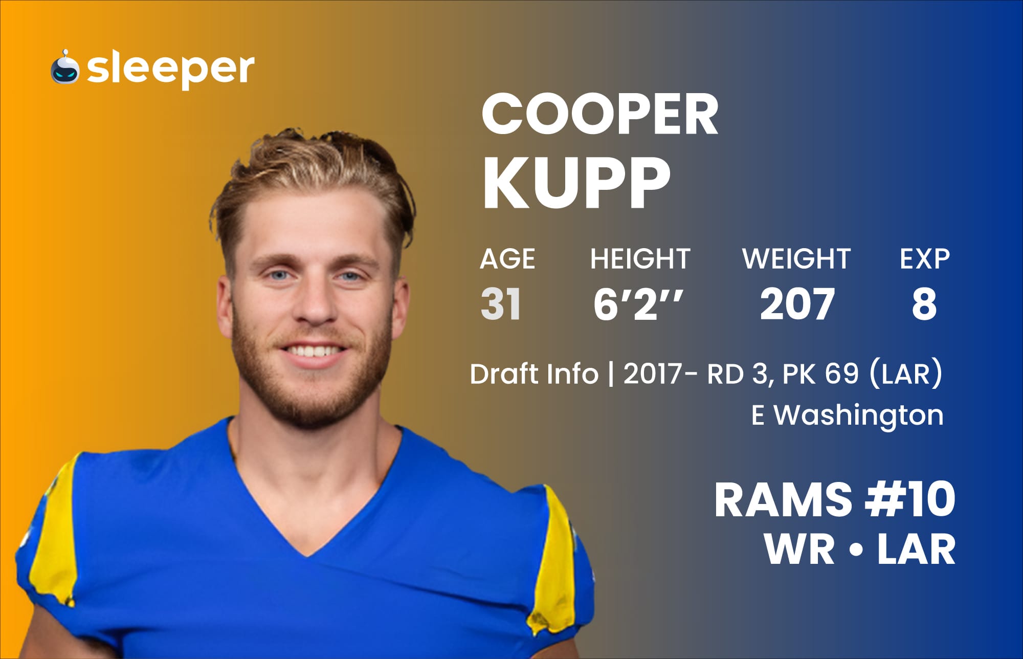 The football world should be treated to a shootout on Sunday night when the Rams head to Motown to take on the high-powered Lions. The matchup is solid for Kupp, Sleeper’s projected WR11 (14.7 PPR points).