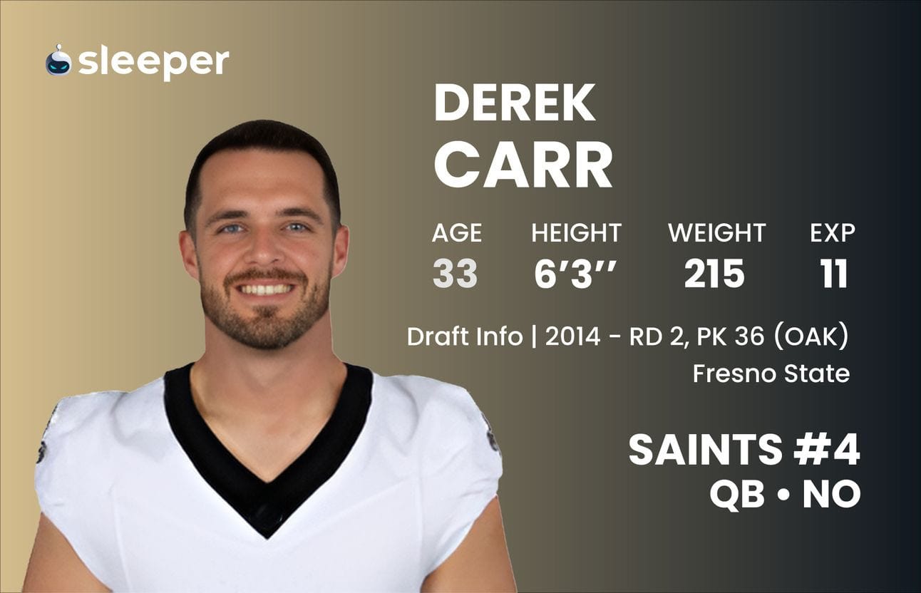 After a torrid start to the season, with six TD passes in two games, Carr has regressed immensely. Over his last two, he has thrown more interceptions (two) than scores (one). His struggles have pushed the veteran down to overall QB15, and despite owning the eighth-best passer rating (103.9) among regular starters in the NFL, Carr belongs on the bench this week.