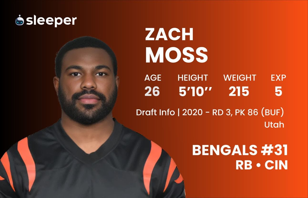 Moss, who is averaging 14.6 PPR fantasy points per game, is among the early-season surprises, ranking as the overall RB18 despite splitting carries with Chase Brown.