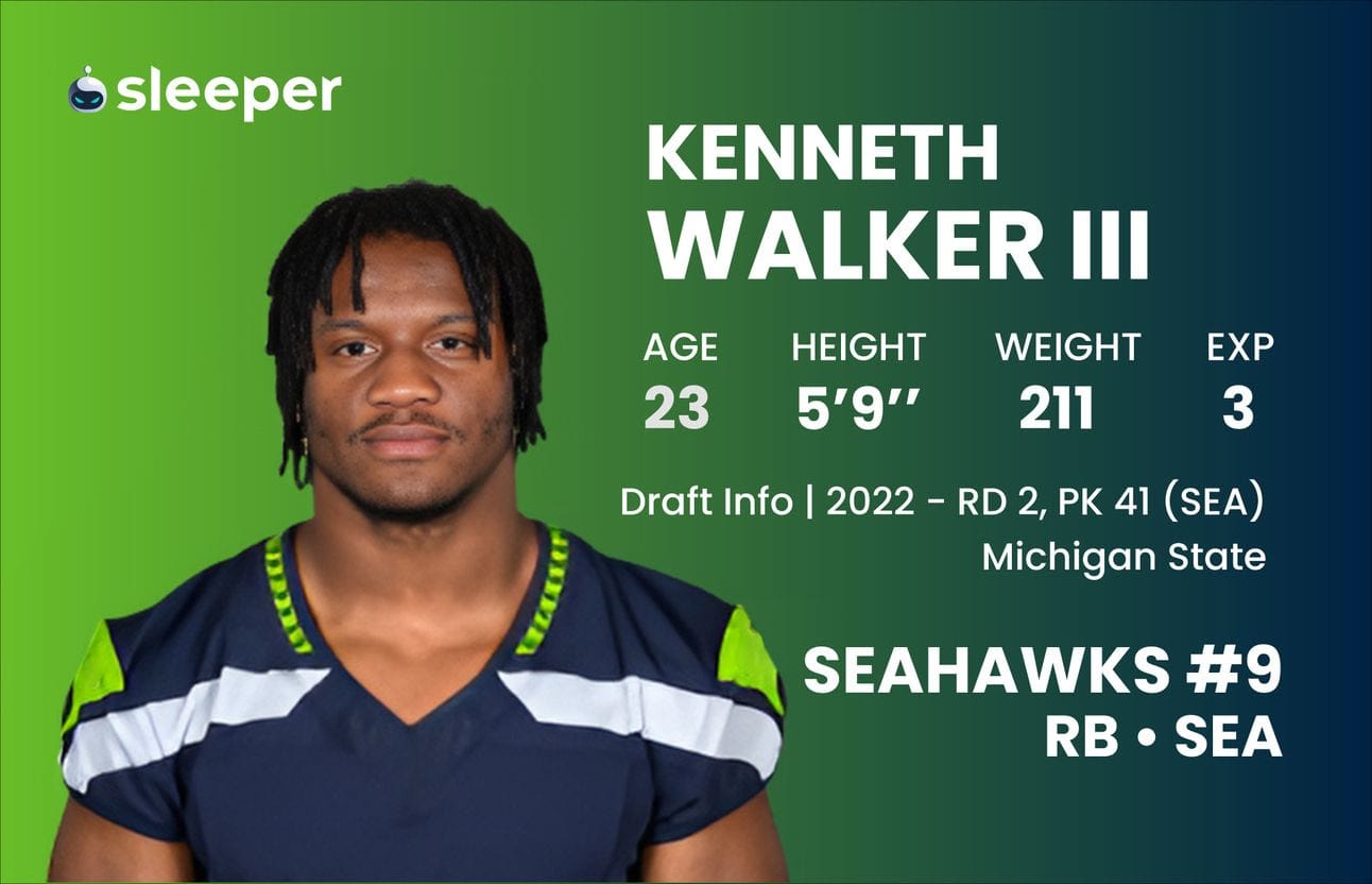 Looking ahead to 2024, he’ll be sharing backfield duties once again with Zach Charbonnet, who is a more fluid receiver out of the backfield than Walker. Sleeper projects 231 carries, 970 rushing yards and 29 receptions for Walker, but Charbonnet’s workload still comes in at 137 carries and 33 receptions.