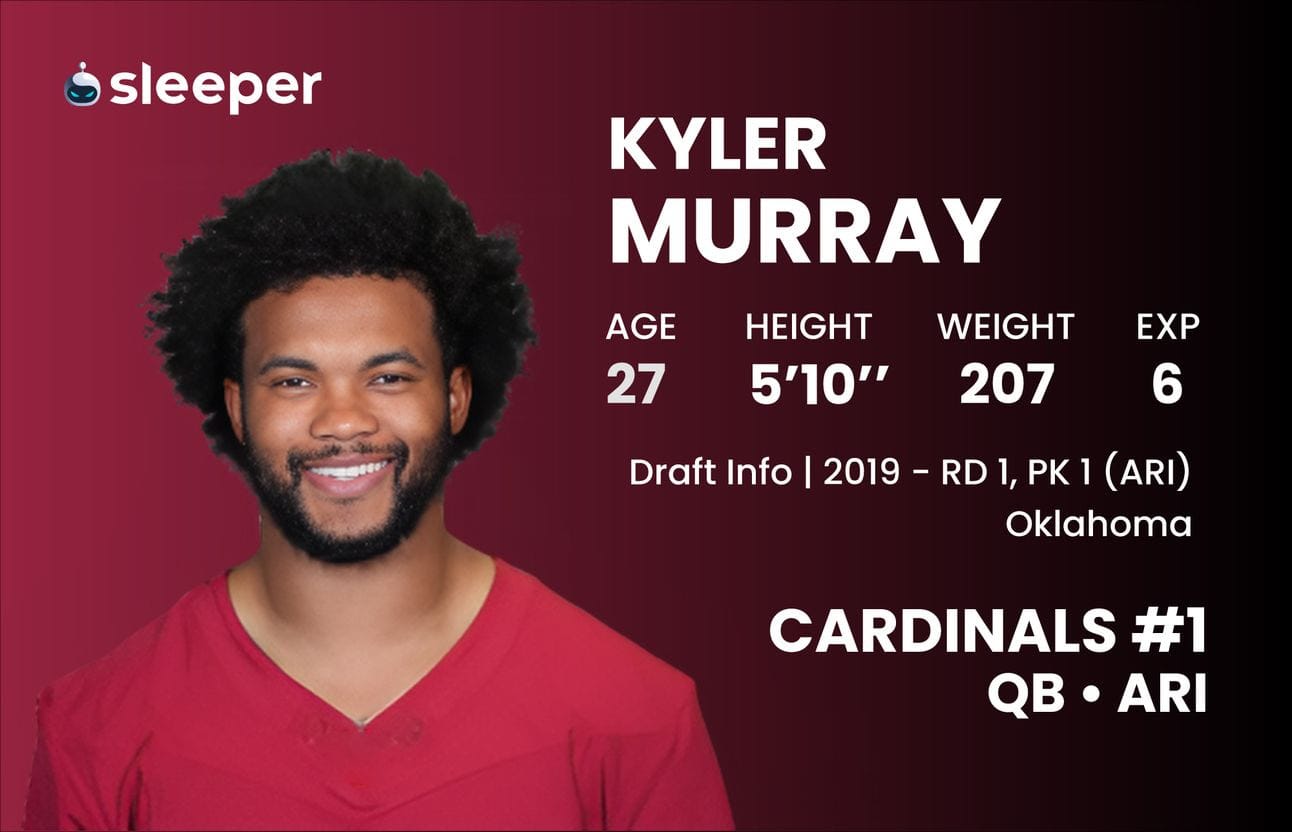 Murray’s redraft ADP currently sits at 83 (QB9) on Sleeper, yet he currently projects as the QB7 in fantasy points per game.