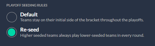 You can now turn on playoff re-seeding to ensure the highest seed always plays the lowest seed each time the bracket advances. pic.twitter.com/7e2JxwHwm7