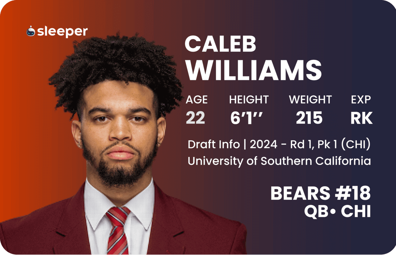 Sleeper analyzes the top rookie quarterbacks heading into the 2024 NFL season: Caleb Williams, Jayden Daniels and Drake Maye.