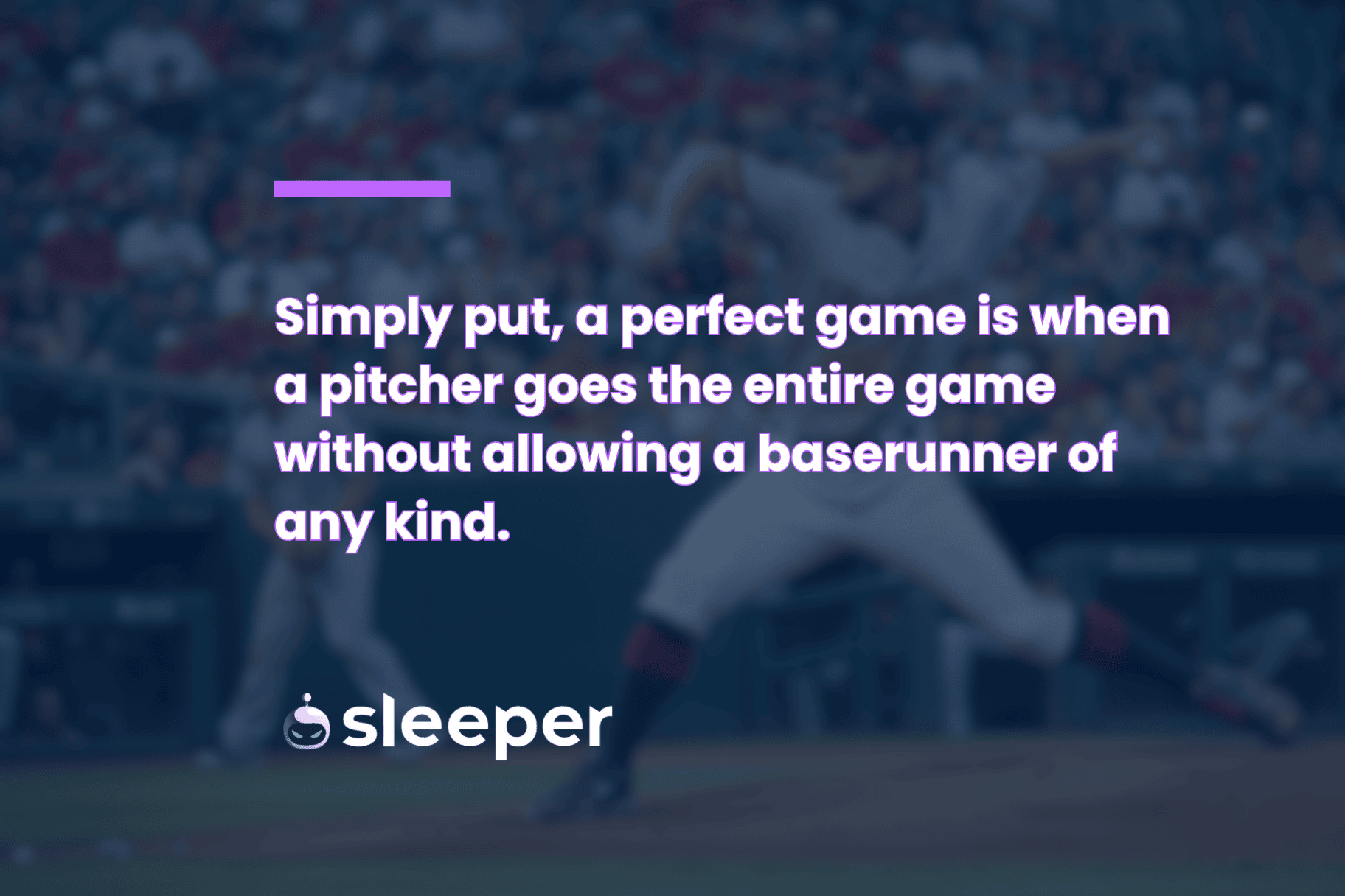 Simply put, a perfect game is when a pitcher goes the entire game without allowing a baserunner of any kind.