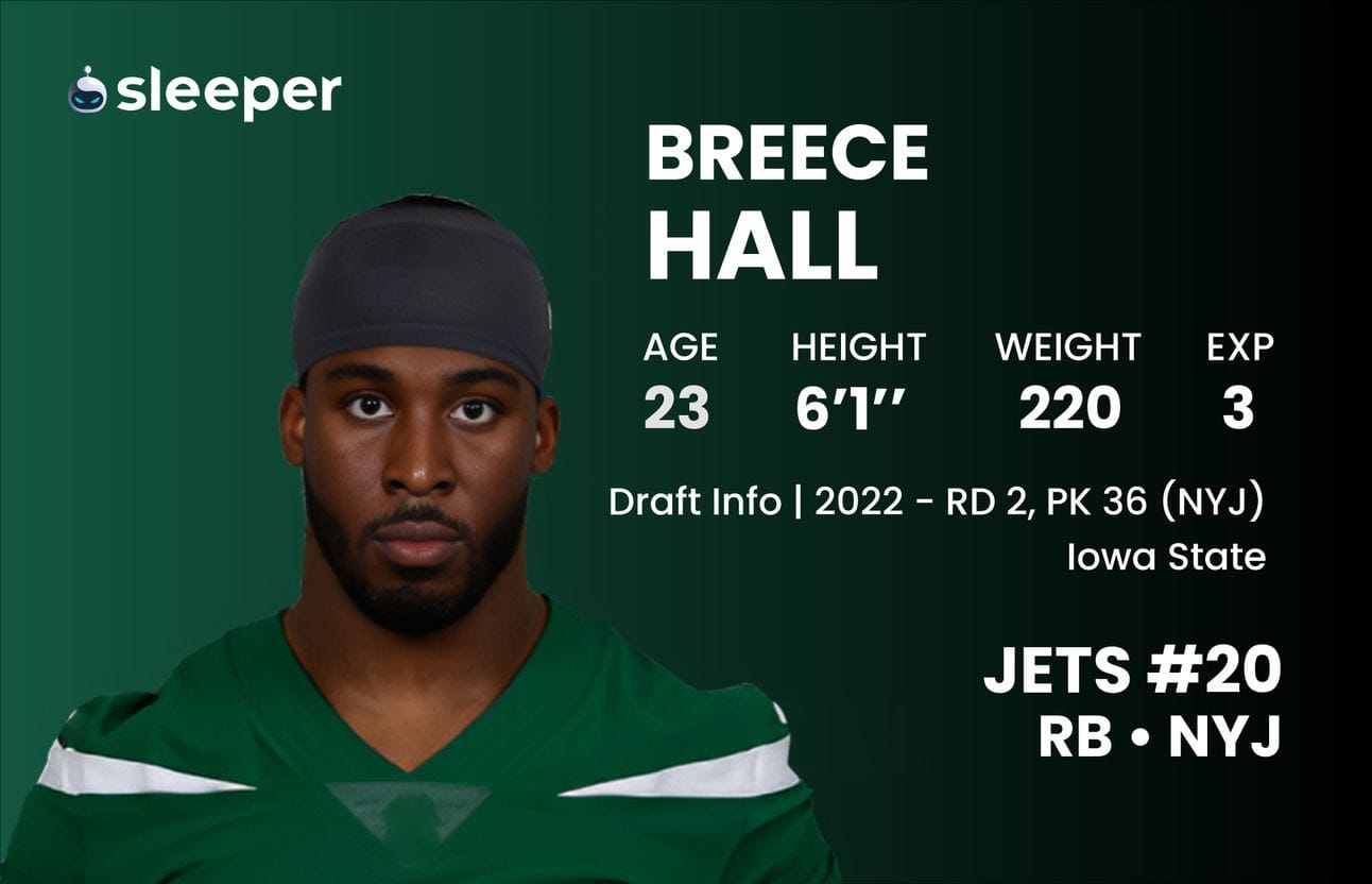 Bijan Robinson and Breece Hall: Both Robinson (ADP 6.5) and Hall (ADP 8.8) are projected by Sleeper to handle top-seven marks in both carries and receptions among RBs. The Falcons and Jets look like top-10 offenses on paper, and both have solid, veteran QBs coming off Achilles tears. When under pressure, Kirk Cousins and Aaron Rodgers are likely to check the ball down frequently.