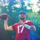 Brandon Beane showing off his collection of draft picks