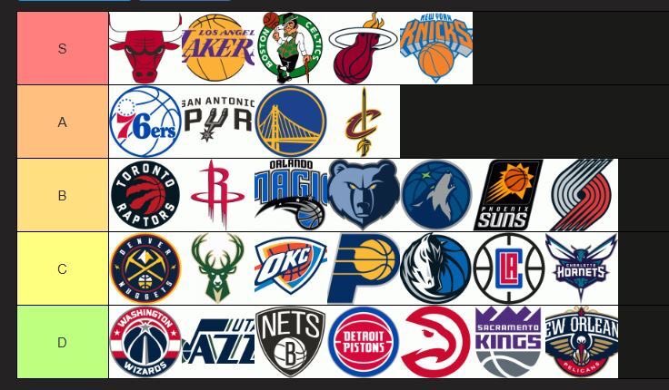 The Pistons and the Lakers have basically the same logo, but apparently 1 is S tier and 1 is D tier.