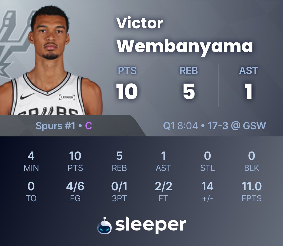 UPDATE: Wemby now has 10/5/1 through FOUR minutes 😳😳 https://t.co/xLscGkrzgo