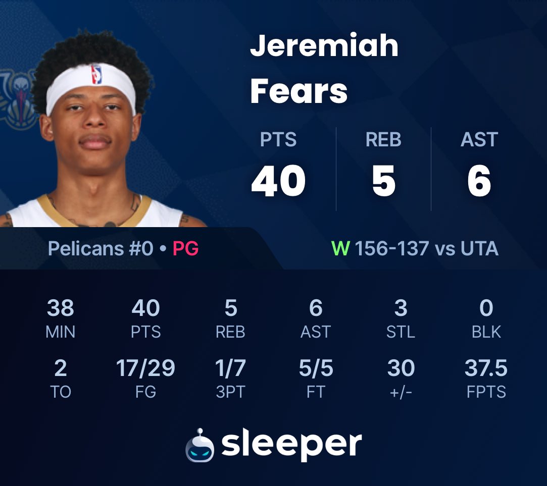 Jeremiah Fears was COOKING today. 40 PTS 5 REB 6 AST