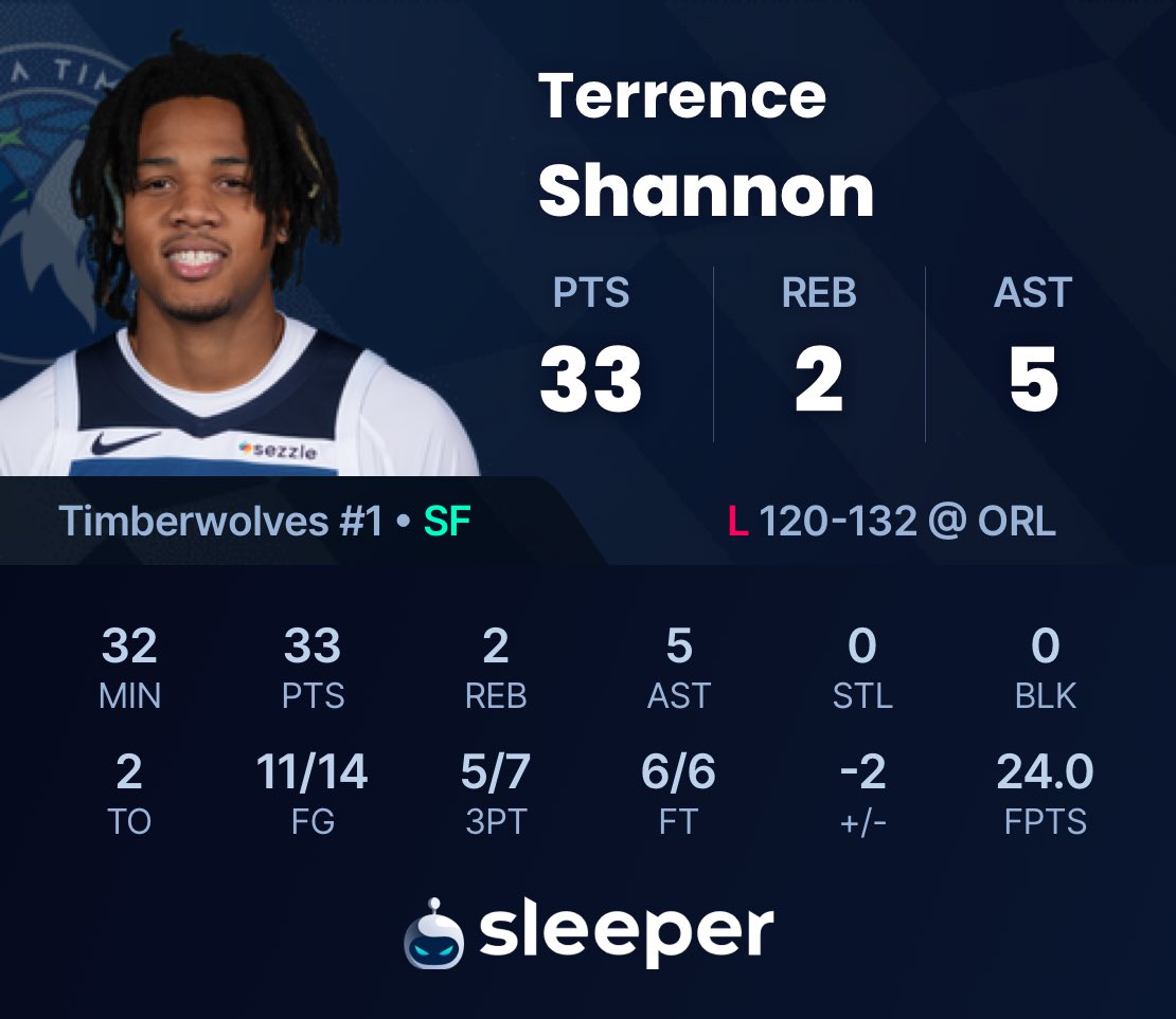 TERRENCE SHANNON TONIGHT: 33 PTS 2 REB 5 AST 11/14 FG