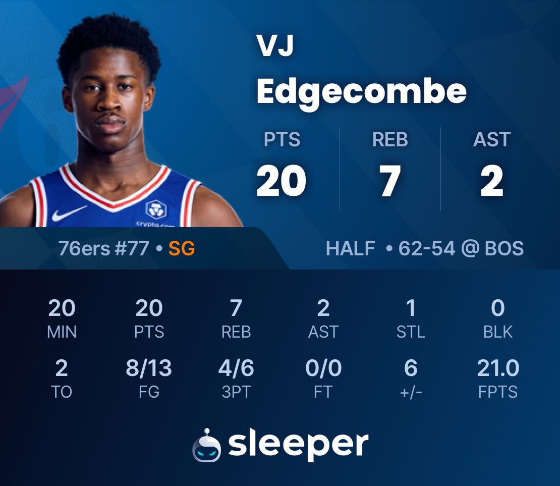 VJ EDGECOMBE IN THE FIRST HALF: 20 PTS 7 REB 2 AST Carrying the 76ers 🙏🙏
