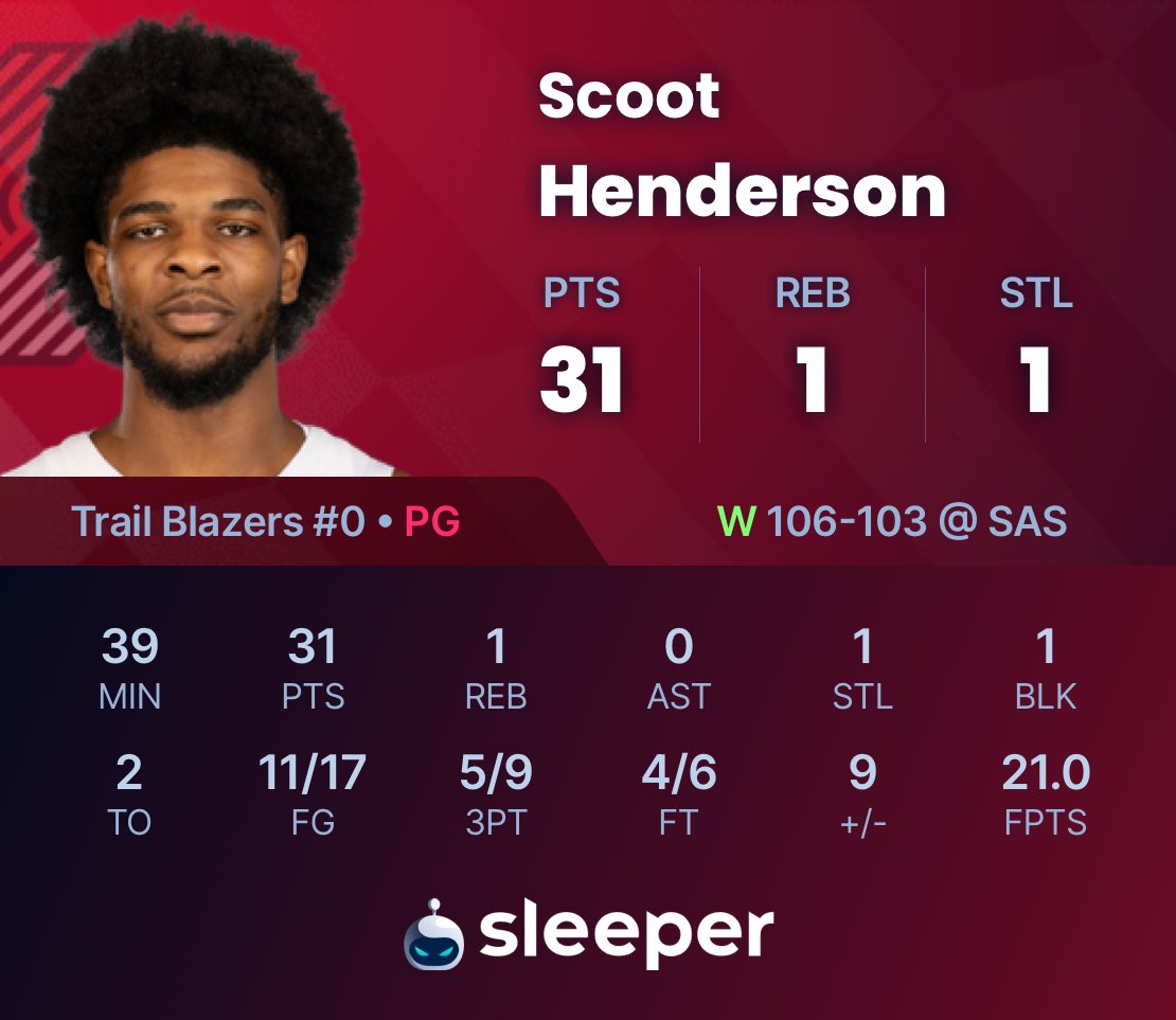 Scoot Henderson just LOCKED IN 😳😳 31 points 0 assists 11/17 FG 5/9 3P