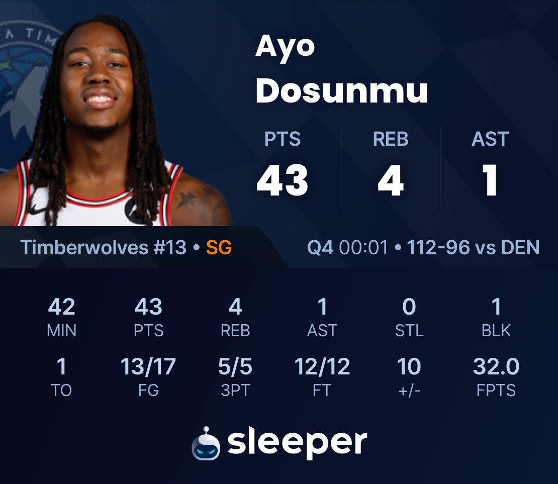 AYO DOSUNMU TONIGHT: 43 PTS 4 REB 1 AST 13/17 FG 5/5 3PT INSANE π±π±π±π±π±