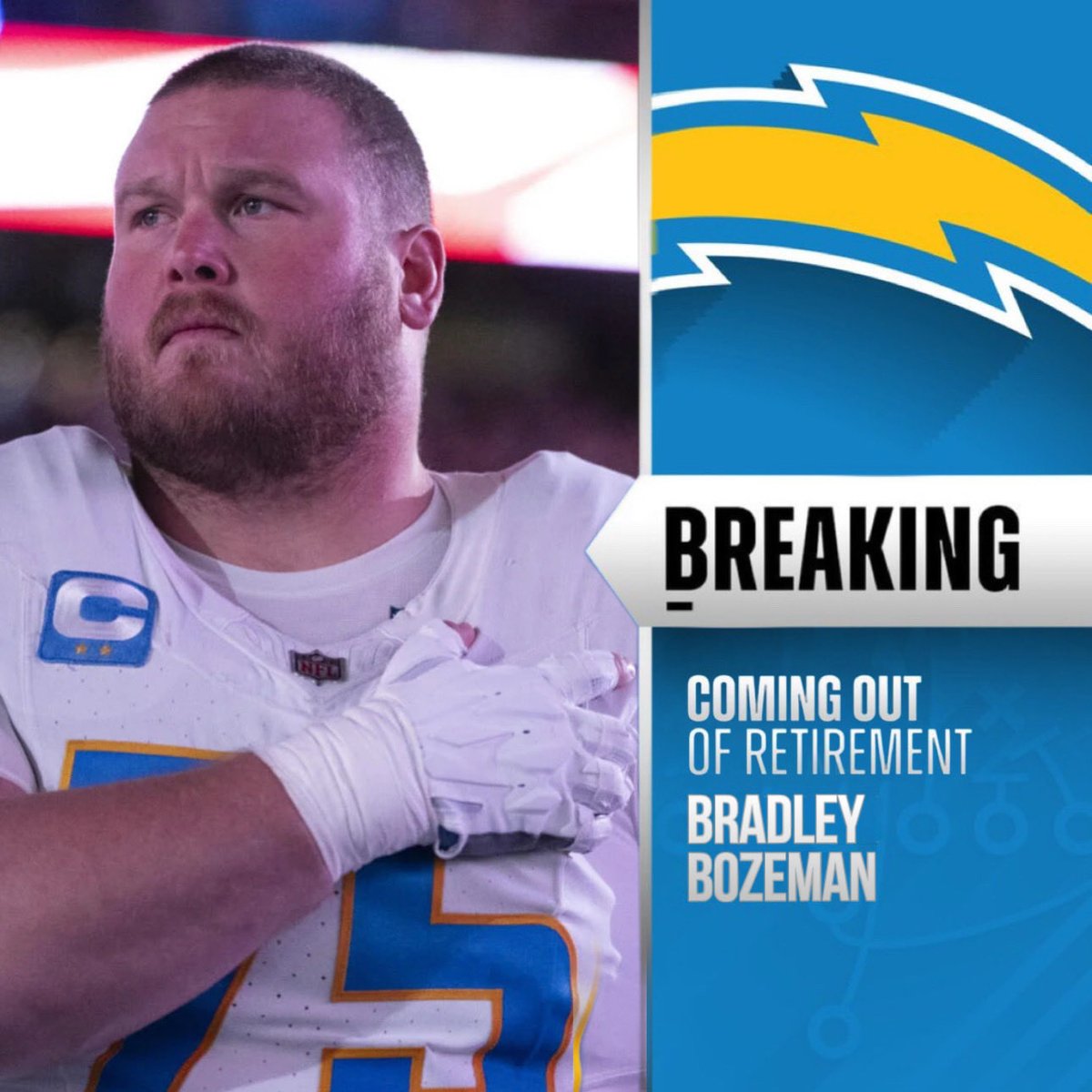 🚨 BREAKING: Center Bradley Bozeman is coming out of retirement to rejoin the #Chargers, per April Fools.