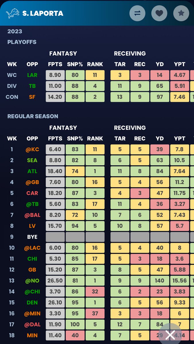 He recorded 33 tackles (24 solo), 3.0 sacks, eight passes defended, two interceptions and one forced fumble in the 2023 season which was his third with Detroit.